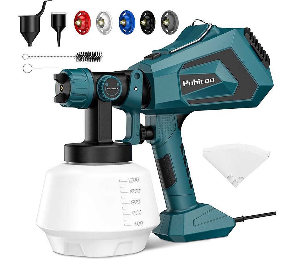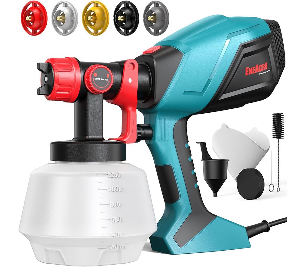 - Potencia (1200 W): apto para pinturas murales, barnices y lacas.